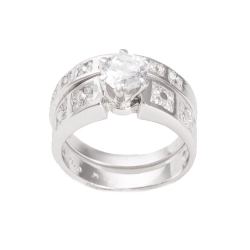 Round CZ in the center with round CZ in flower design on the side and on the band