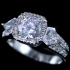 Fancy design with heart design with princess cut CZ in the center and round and baguette CZ on the sides